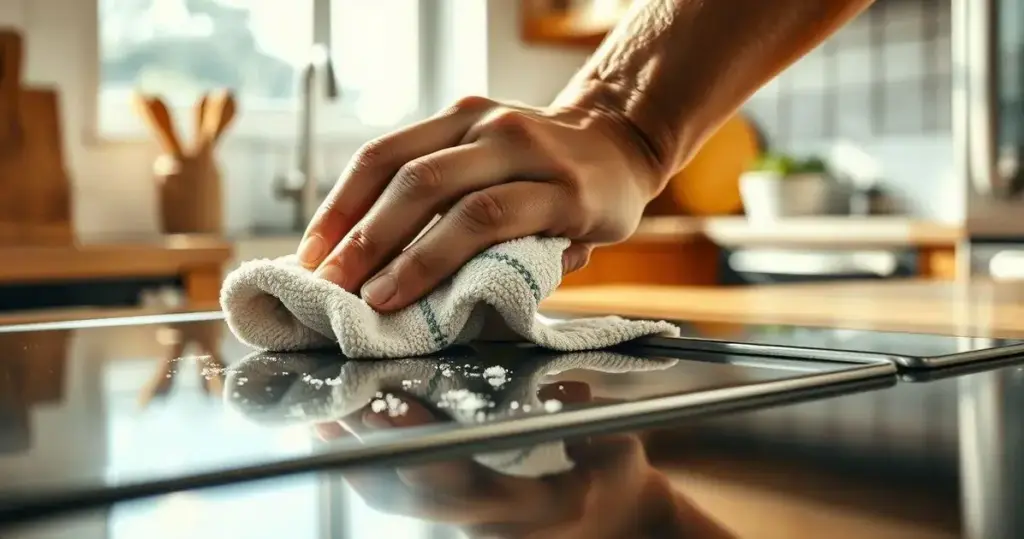| Vinagre branco | Manchas de água, gordura, opacidade | Pano úmido, deixar agir, enxaguar |
