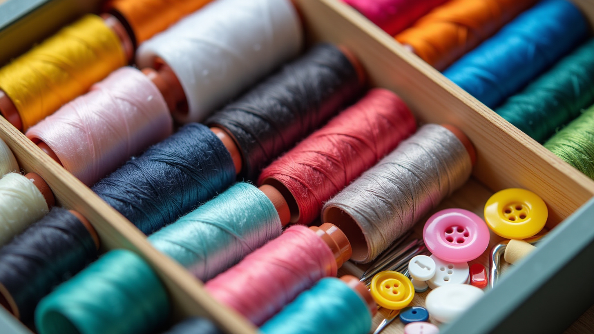 Categorize seus materiais: linhas, agulhas, botões, tudo no seu devido lugar.